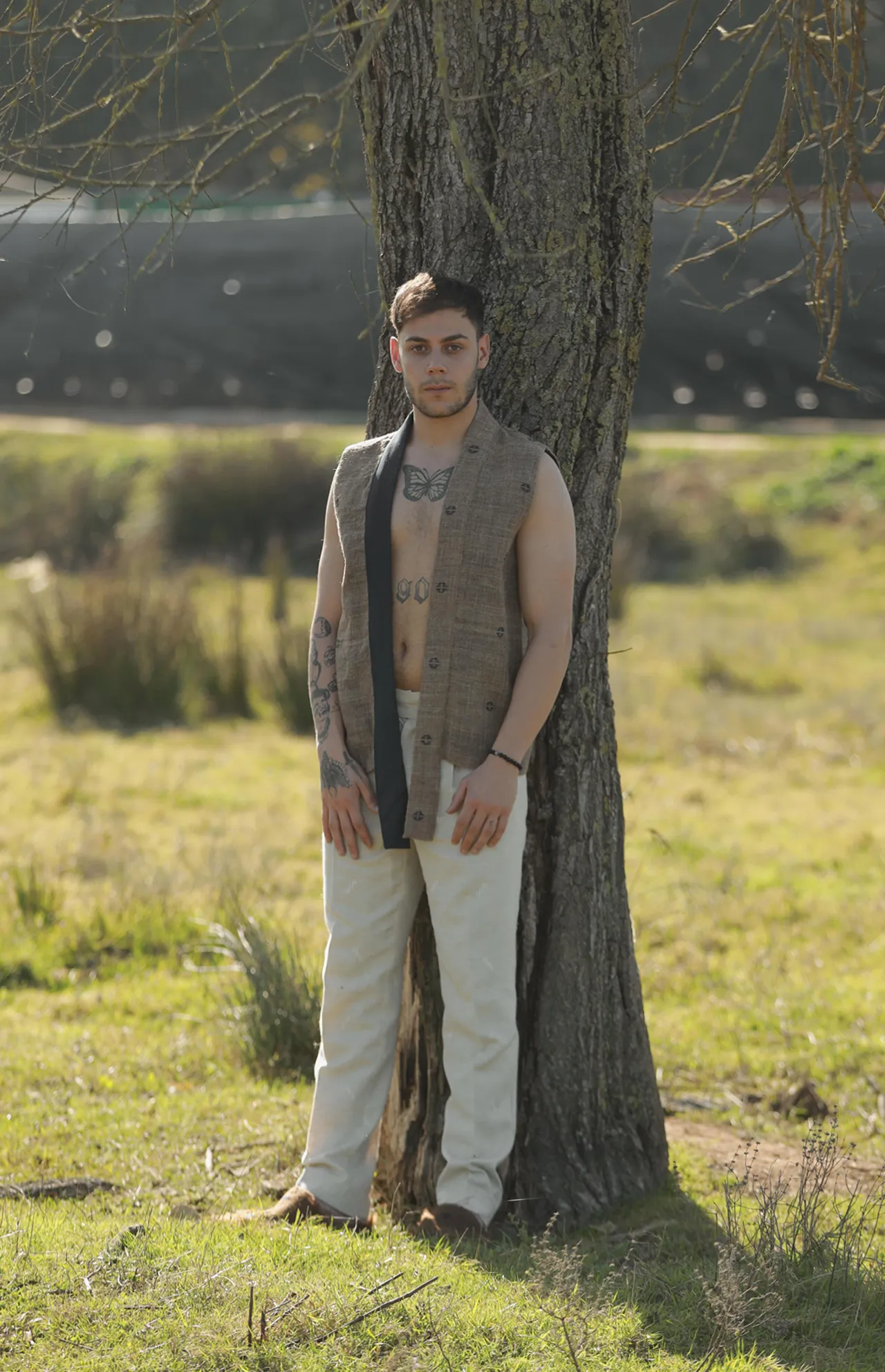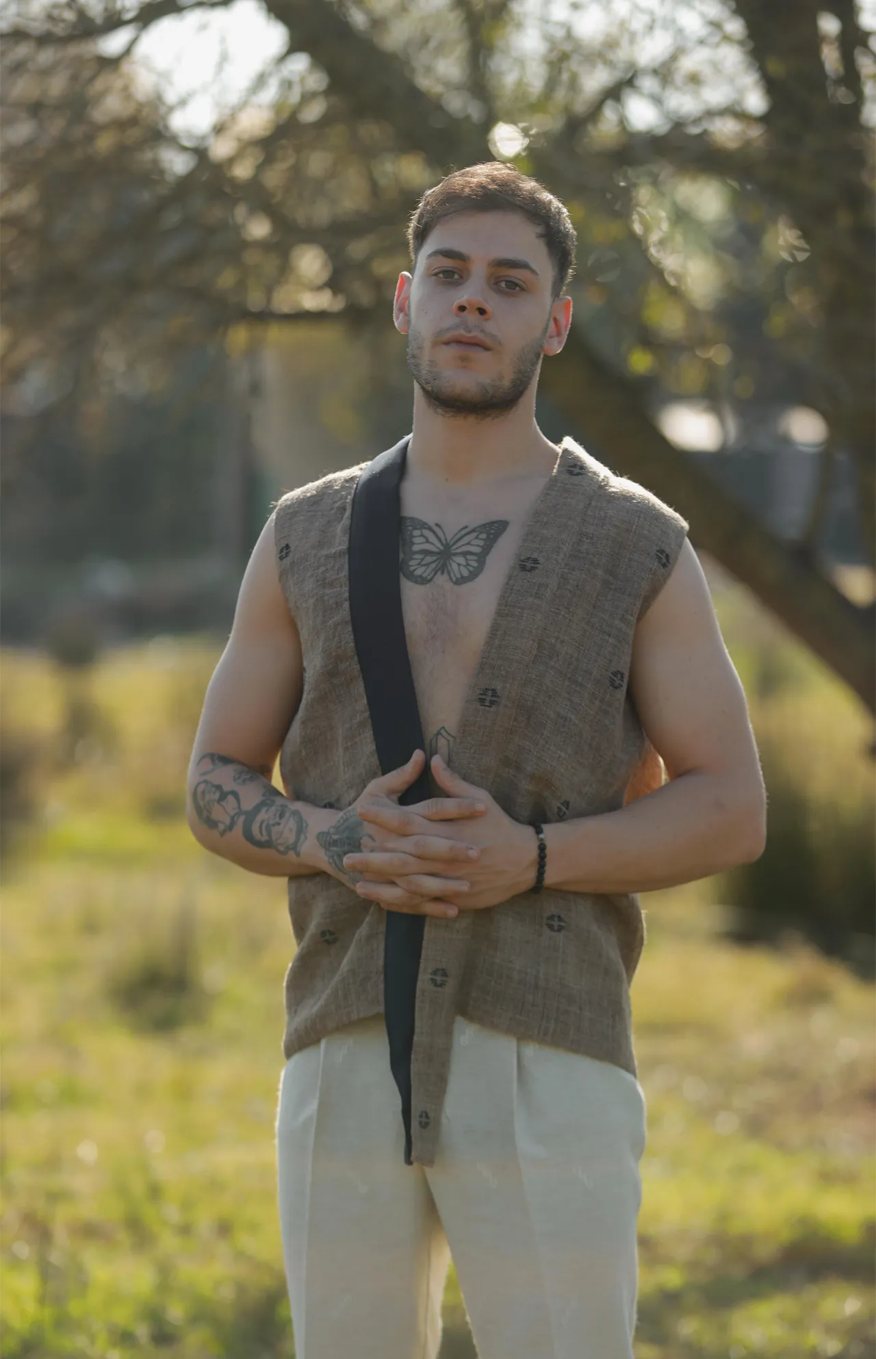 Koyun yününden yapılan çok zahmetli aşamalardan geçerek dokuma tezgahlarında kadınlar tarafından dokunarak elde edilen kumaşlardır. Yünün doğal renkler, renkli ipliklerle kumaş üzerine dokuma esnasında motifler işlenir. Koleksiyonda kumaşın kendine özgü renkler olan kahverengi, krem ve toprak tonları kullanıyoruz. Koyun yününden yapılan ve kimyasal madde içermeyen doğal olması yönüyle tercih edilen el emeği olan bu kıymetli kumaşlar büyük maneviyat içermektedir. Anadolu’da yüzyıllardır kullanılan bu kumaş bilinen adı ile Ehram, üzerindeki motiflerle dikkat çekiyor. Her bir motifin ayrı isim ve hikayesi var. Ehram’ın üretiminde başrolü olan Anadolu kadınları işledikleri Motiflerle kumaşa farklı bir ruh katıyor.