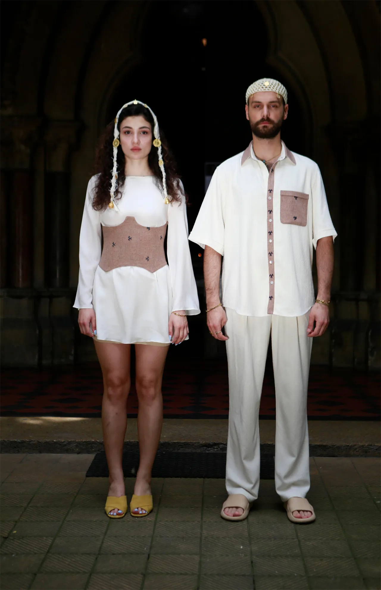 Our brand, founded by embracing Ehram fabric and shaping EŞA’s identity with inspiration from Bayburt — an Anatolian city and the land of our ancestors — now brings Ehram together with the pure silk fabric of Hatay, the city of civilizations and our homeland. Hatay’s heritage of pure silk carries the city’s centuries-old mystical and enigmatic spirit; the delicacy of the silk cocoon meets the firm stance of Ehram, creating the “Hat-Ay” collection. In this collection, cream-dominant earth tones and gold-plated materials featuring the silhouette of Atatürk are used, emphasizing Hatay’s significance to Atatürk.
