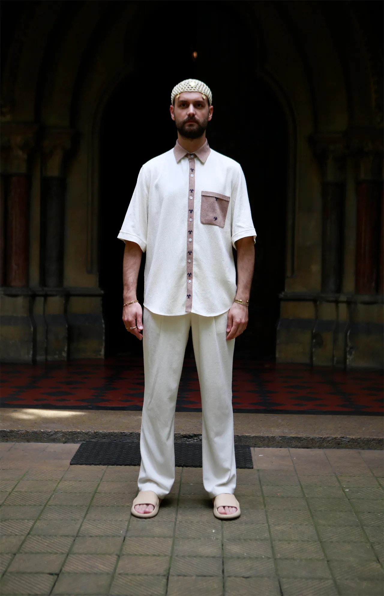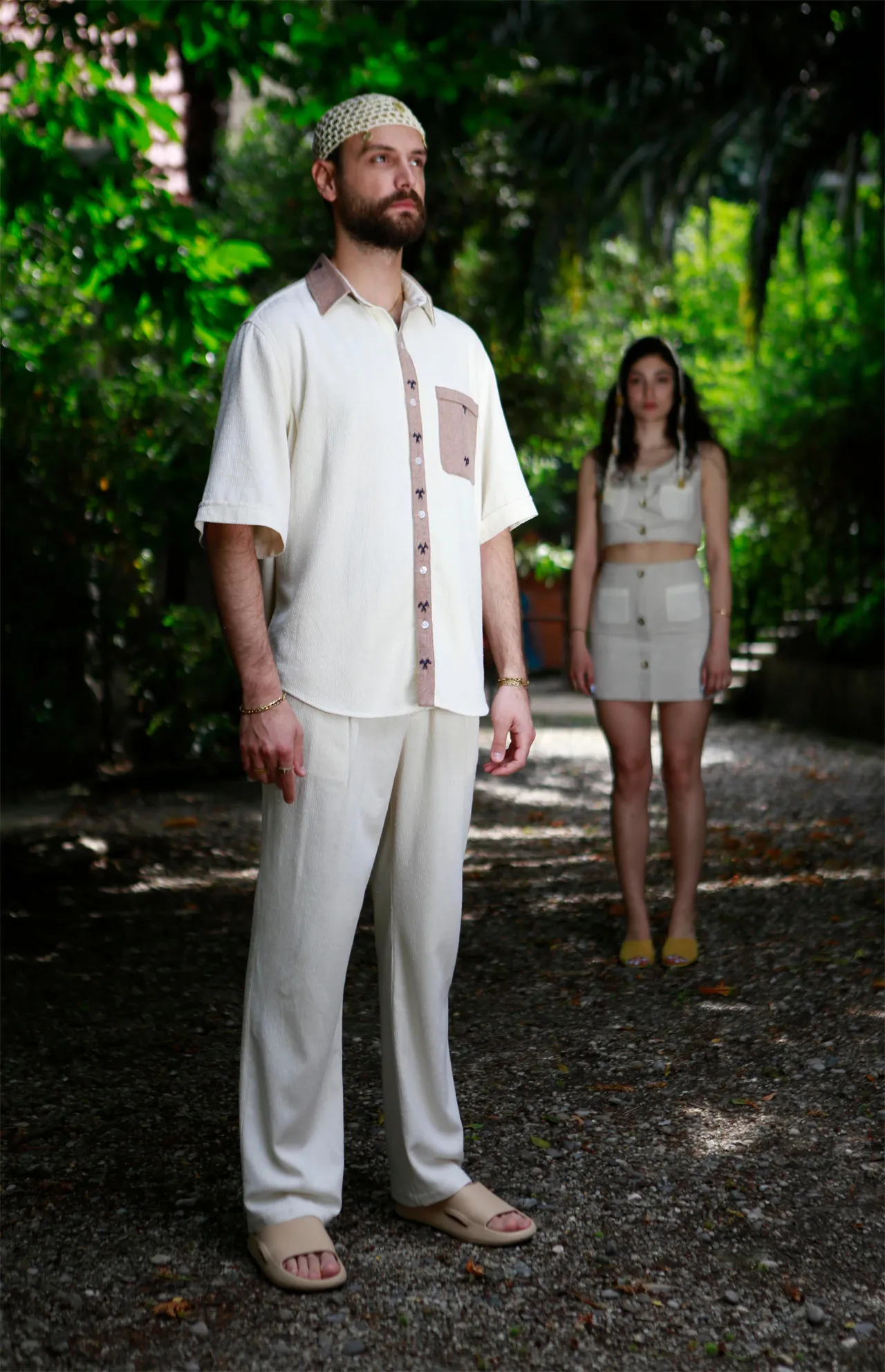 Our brand, founded by embracing Ehram fabric and shaping EŞA’s identity with inspiration from Bayburt — an Anatolian city and the land of our ancestors — now brings Ehram together with the pure silk fabric of Hatay, the city of civilizations and our homeland. Hatay’s heritage of pure silk carries the city’s centuries-old mystical and enigmatic spirit; the delicacy of the silk cocoon meets the firm stance of Ehram, creating the “Hat-Ay” collection. In this collection, cream-dominant earth tones and gold-plated materials featuring the silhouette of Atatürk are used, emphasizing Hatay’s significance to Atatürk.