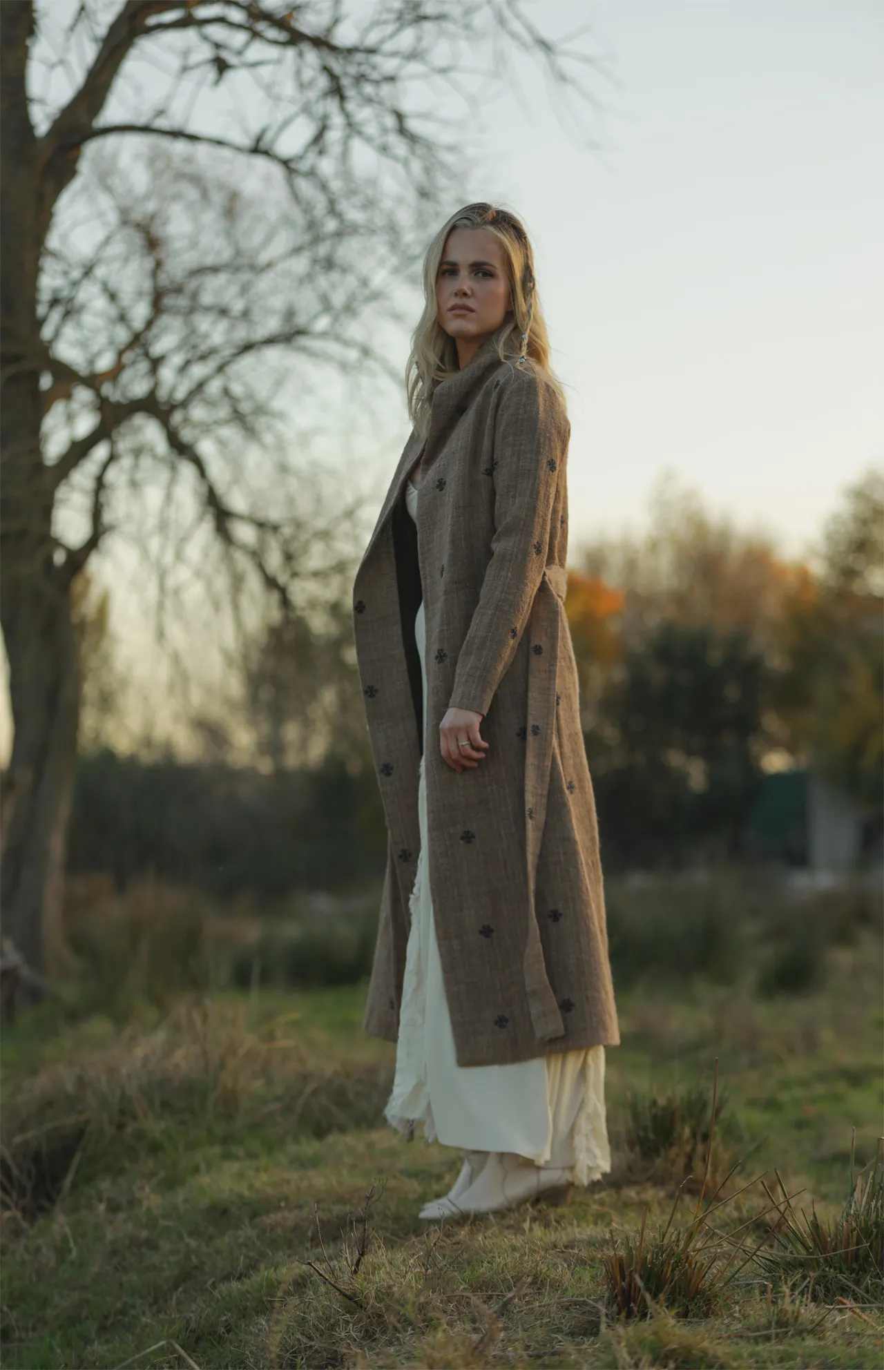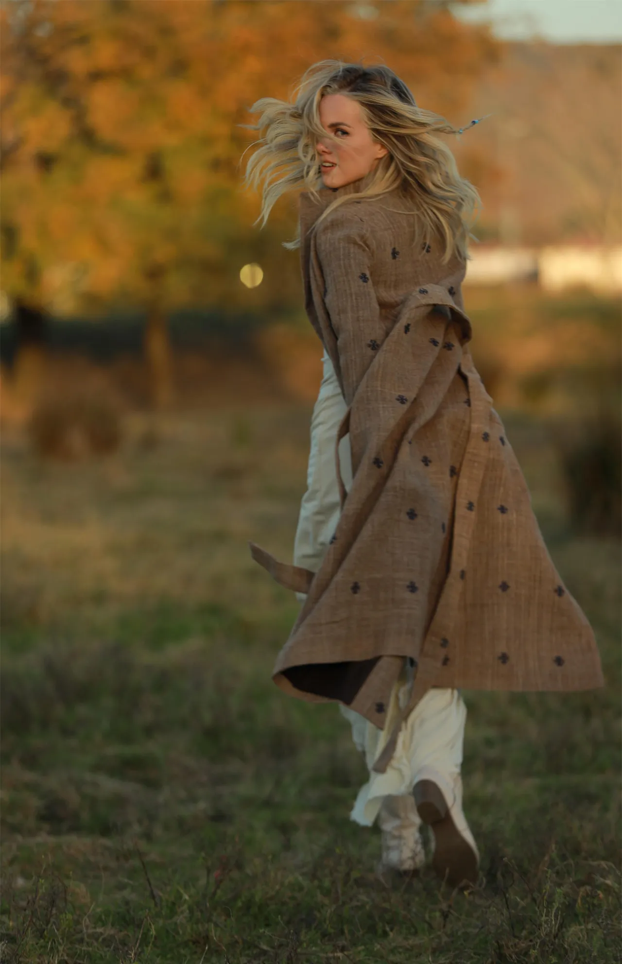 Koyun yününden yapılan çok zahmetli aşamalardan geçerek dokuma tezgahlarında kadınlar tarafından dokunarak elde edilen kumaşlardır. Yünün doğal renkler, renkli ipliklerle kumaş üzerine dokuma esnasında motifler işlenir. Koleksiyonda kumaşın kendine özgü renkler olan kahverengi, krem ve toprak tonları kullanıyoruz. Koyun yününden yapılan ve kimyasal madde içermeyen doğal olması yönüyle tercih edilen el emeği olan bu kıymetli kumaşlar büyük maneviyat içermektedir. Anadolu’da yüzyıllardır kullanılan bu kumaş bilinen adı ile Ehram, üzerindeki motiflerle dikkat çekiyor. Her bir motifin ayrı isim ve hikayesi var. Ehram’ın üretiminde başrolü olan Anadolu kadınları işledikleri Motiflerle kumaşa farklı bir ruh katıyor.